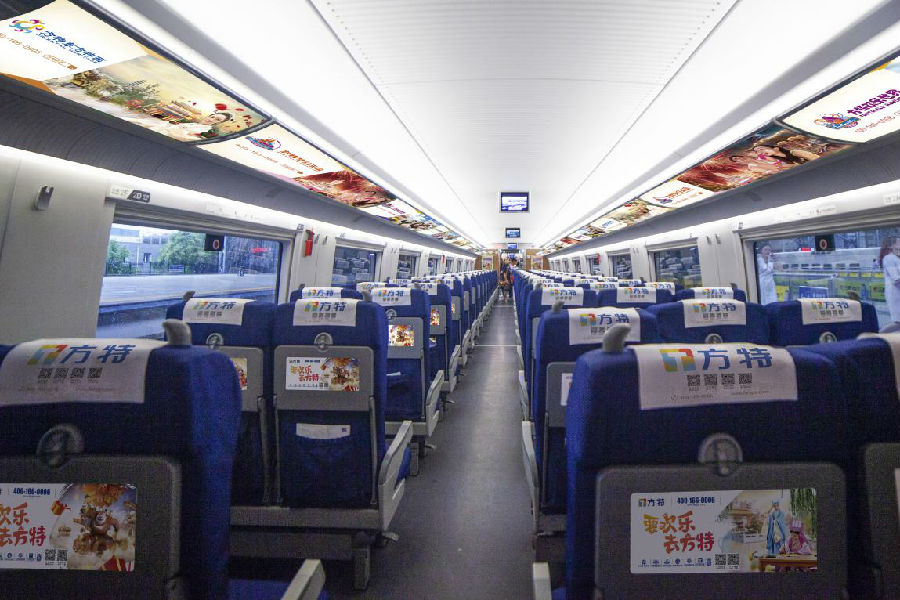 此外,“方特號(hào)”高鐵列車均充滿方特元素。不僅列車的車身有著醒目的方特品牌涂裝,列車內(nèi)的座椅枕巾、創(chuàng)意海報(bào)、車窗透明貼、行李架彩貼乃至車內(nèi)廣播,都體現(xiàn)鮮明的方特主題。乘客還可通過(guò)車廂內(nèi)提供的二維碼信息下載方特旅游APP,提前掌握?qǐng)@區(qū)動(dòng)態(tài)和配套的餐飲、住宿、購(gòu)物等信息;借助APP,乘客還可完成提前購(gòu)票并規(guī)劃游玩路線等。華強(qiáng)方特有關(guān)負(fù)責(zé)人表示:“今年我們冠名的多條高鐵線路,將串聯(lián)起方特已落子布局的十余座城市,形成區(qū)域聯(lián)動(dòng);我們希望能讓方特品牌更近距離接觸各地乘客,并將更多的歡樂(lè)帶給大家,也歡迎游客朋友們乘坐高鐵來(lái)沿線的方特主題樂(lè)園體驗(yàn)游玩。”