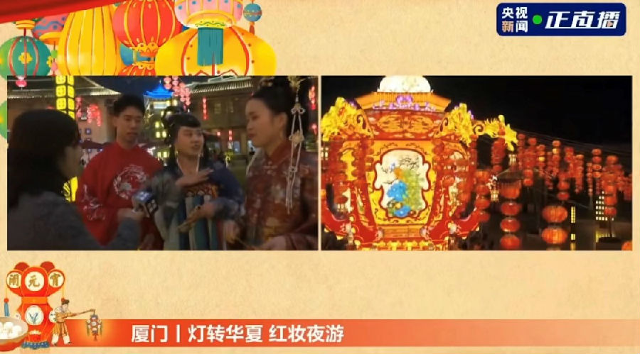 2月8日,廈門方特東方神畫壯觀璀璨的新春燈會提前亮燈,受到央視13套《新聞直播間》欄目聚焦報道,流光溢彩的花燈組合為留在廈門過年的群眾增添了濃濃年味。