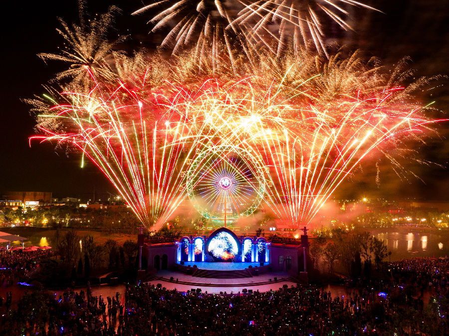 綿陽方特運用特色場景結合全息投影的高科技手段,打造流光溢彩的天幕極光;濟南方特推出雷峰塔激光秀倒計時、無人機天空音樂劇等表演;自貢方特數百架無人機高空“炫技”,史前煙花秀震撼人心;株洲方特三大主題煙花秀精彩紛呈,萬人倒數現場更將熱鬧非凡。