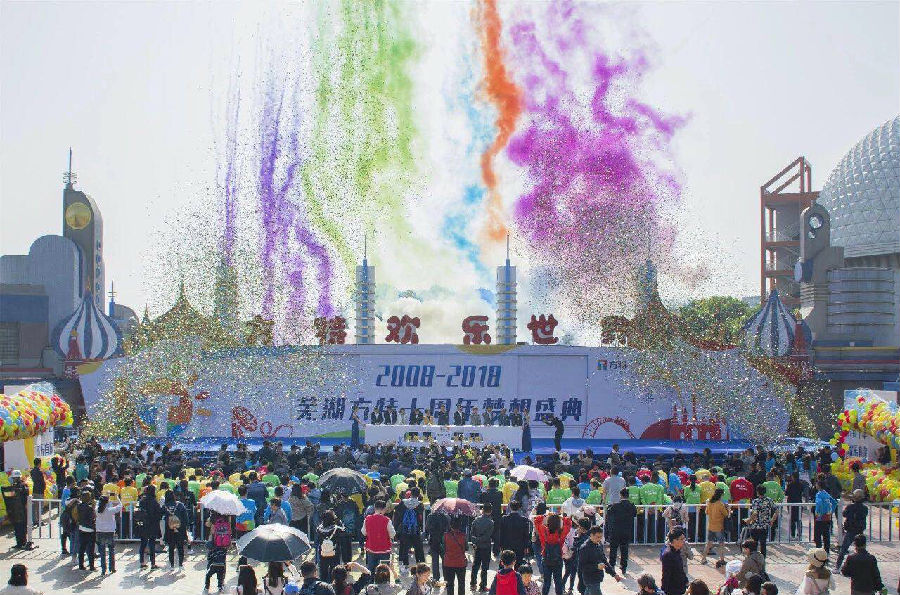 10年,蕪湖方特接待了來自世界各地超過4300萬游客,售出的玩偶公仔堆起來高度超過30座珠穆朗瑪峰,深受大家喜愛的夜場節(jié)目“夢幻大巡游”已累計走過540公里,節(jié)目中與游客互動擊掌近45000次;10年,蕪湖方特過山車累計極速飛馳19.86萬公里,可環(huán)繞地球近5圈。