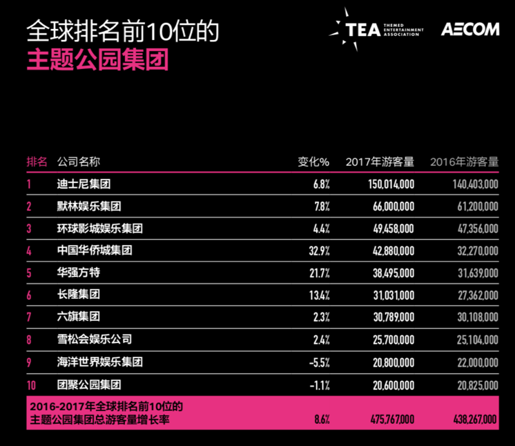 全球排名前十的主題樂園集團(tuán);來源:2017年全球主題樂園調(diào)查報告,TEA&AECOM
