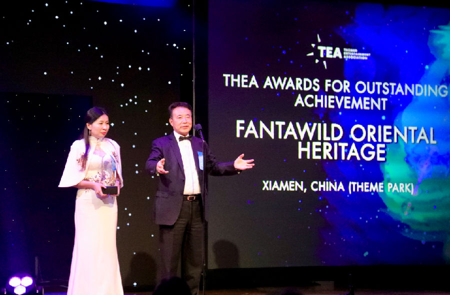 國際主題娛樂協會TEA(Themed Entertainment Association)成立于1991年,是一個國際非盈利性行業協會,其成員包括世界各地最知名的旅游景點及項目體驗的創意者、開發者、設計者和生產者,以及游樂行業的革新者和方案解決者。國際主題娛樂協會所設立的Thea西婭大獎(Thea Awards),旨在表彰全球業界為游客創造出優秀非凡體驗的主題娛樂設計項目、游樂設施、展覽和景點等,一直被國際公認為主題游樂企業及產品卓越品質的象征,素有全球主題娛樂行業“奧斯卡”的美譽,該獎項每年由來自世界各地的三百多個高質量的游樂項目和主題公園角逐產生。廈門“方特東方神畫”成功將中國傳統文化與高科技融合,以創意形式向世界游客展現源遠流長、豐富多元的中國歷史、文化與民俗,憑借卓越的東方魅力在本屆評選中脫穎而出,成為2018年度TEA“杰出成就獎”主題樂園類唯一獲獎者。